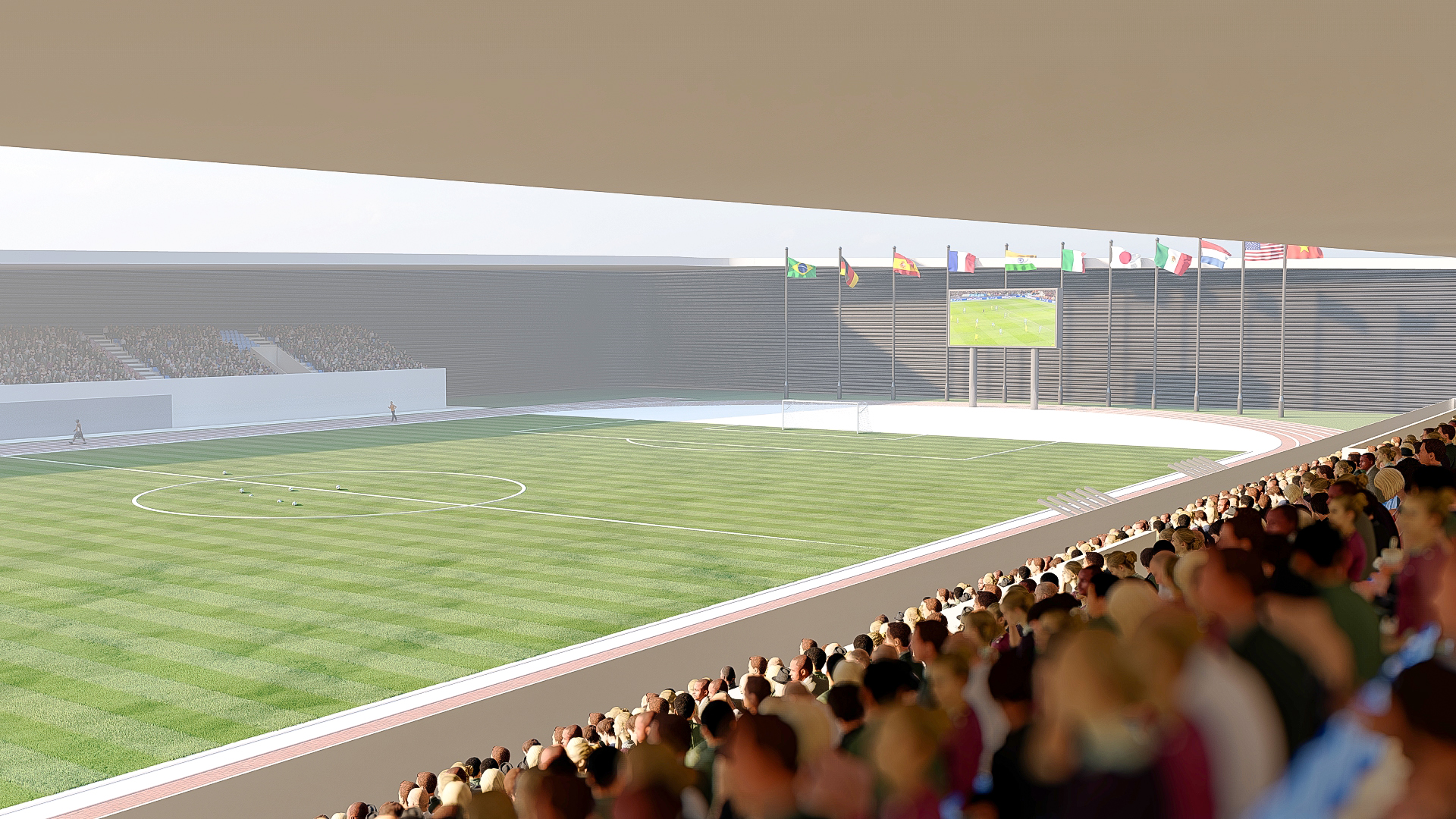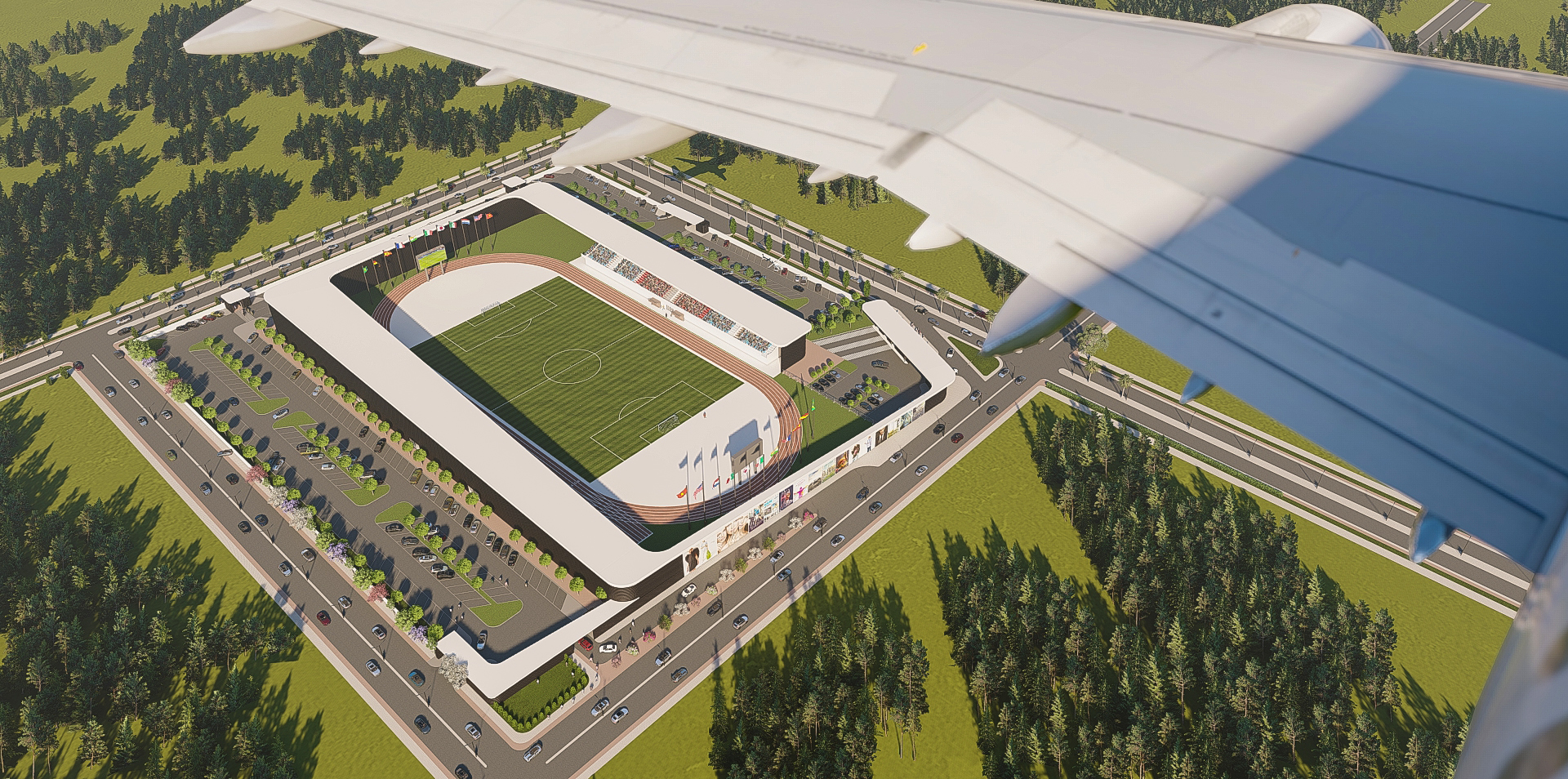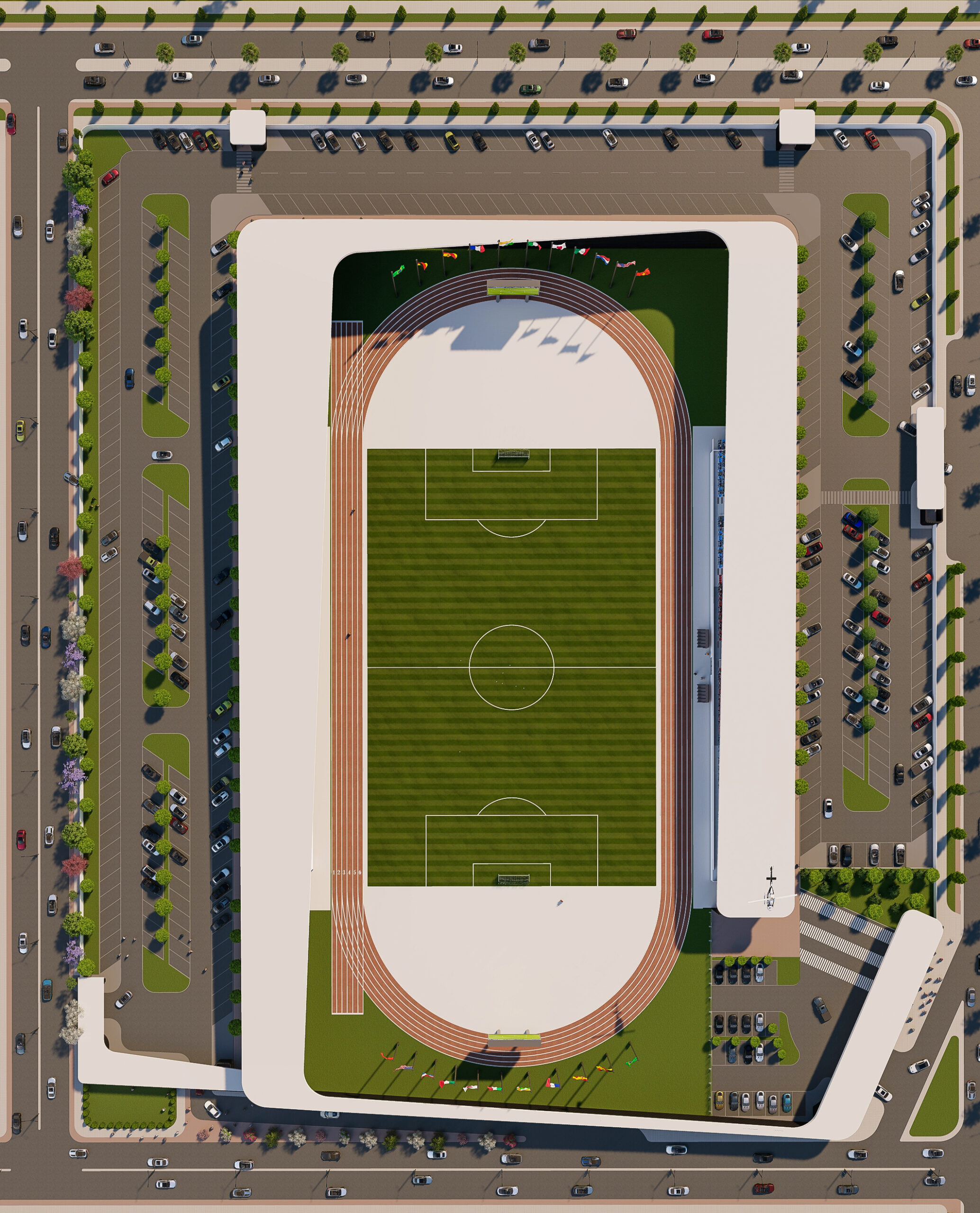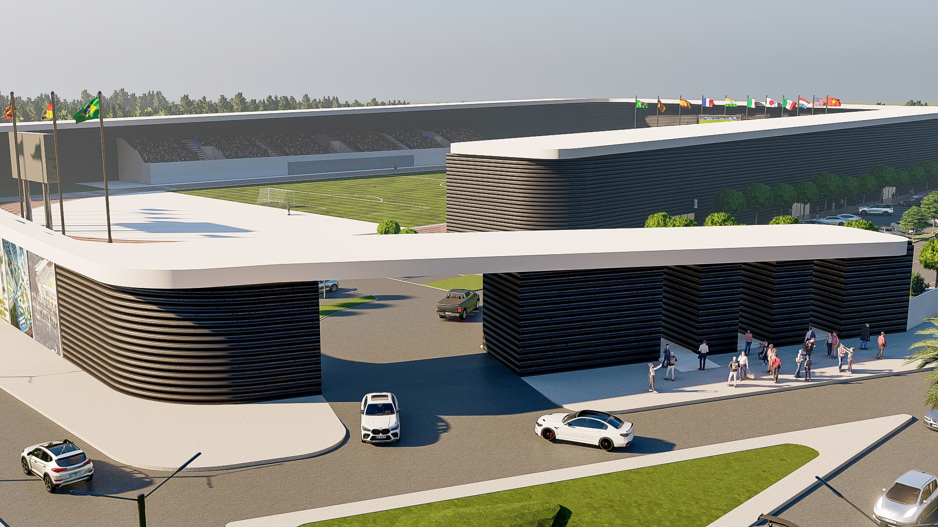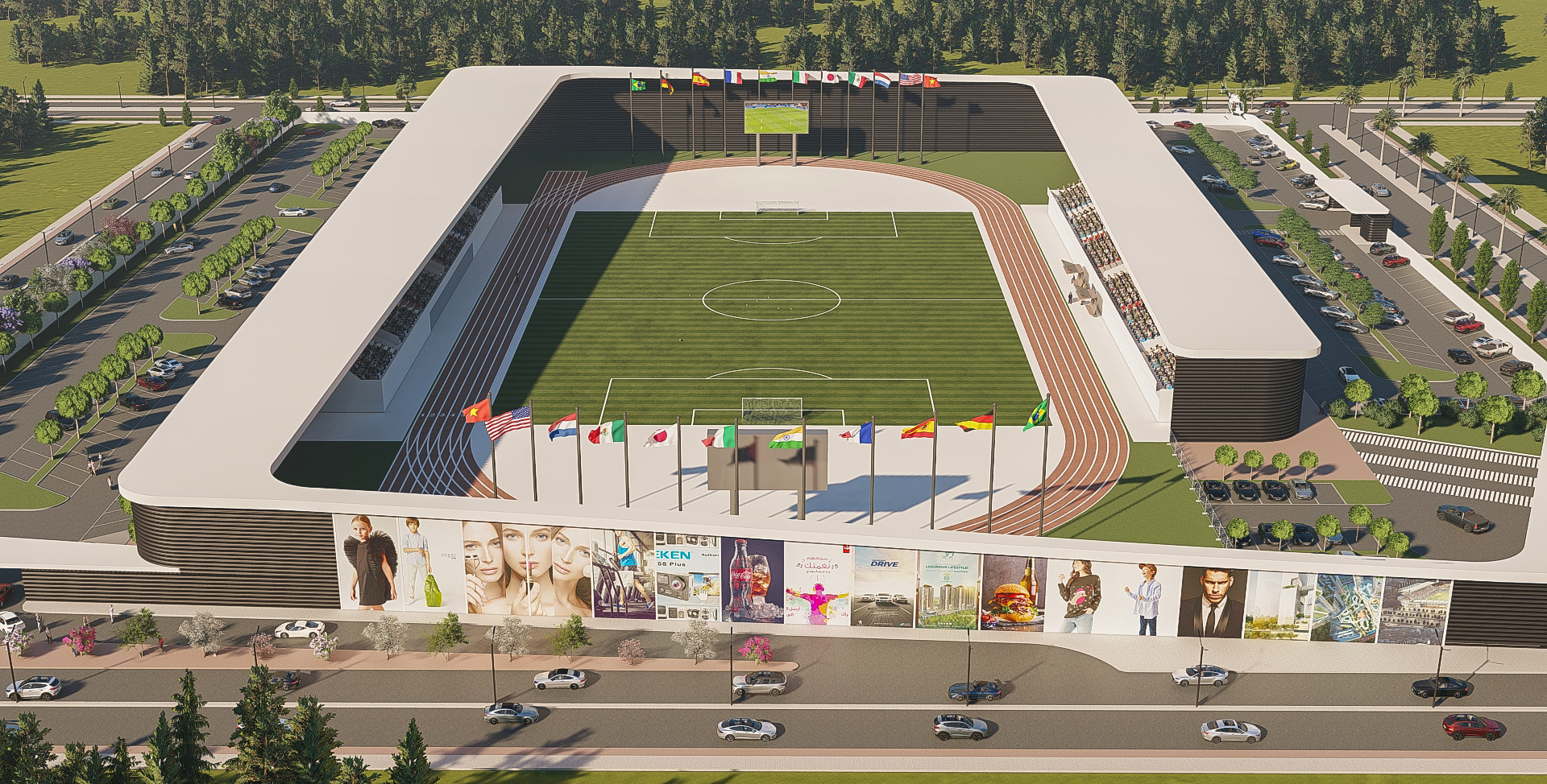 تصميم معماري يجمع بين الكفاءة الوظيفية والجمالية العصرية، مع رمزية واضحة تعكس مكانة الرياضة كجزء أساسي من تطور المدينة