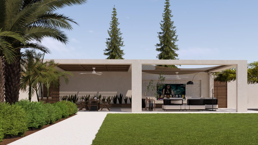 حدائق خضراء محيطة تعزّز الخصوصية والهدوء، تضم جلسة خيمة تراثية تعبّر عن الأصالة، إلى جانب جلسة حديثة مع منطقة باربكيو مثالية للسهرات والتجمعات العائلية