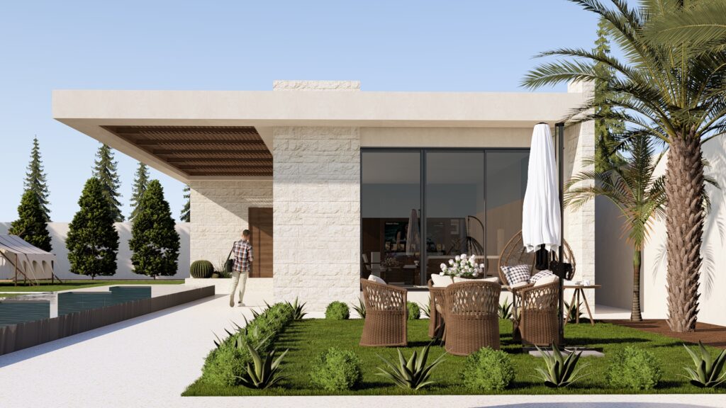 تم تصميم هذه الفيلا وفق رؤية معمارية معاصرة، ترتكز على تقسيم المساحات إلى خمسة فضاءات رئيسية ، ينسجم كل منها مع نمط الحياة الحديثة، ويوفّر تجربة سكنية متكاملة تجمع بين الراحة، الخصوصية، والرفاهية. كل فضاء صُمّم بعناية ليلبّي احتياجات محددة، ويعزز التوازن بين الجمال العملي والانفتاح على الطبيعة