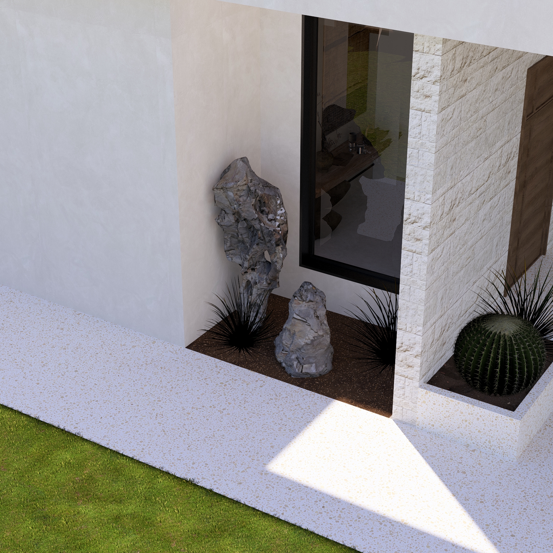 مدخل رئيسي أنيق بممر مستقيم تحيط به المساحات الخضراء، يقود إلى قلب الفيلا. كما يتوفّر موقف سيارات واسع عند البوابة الرئيسية لخدمة السكان والضيوف