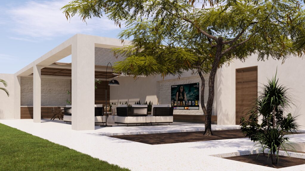 جلسات خارجية مصمّمة بعناية: مناطق جلوس خارجية مريحة، تحيط بها الطبيعة والمساحات الخضراء، مثالية لأوقات الغروب، التجمعات العائلية، أو الاستمتاع بكوب قهوة صباحي في أجواء هادئة
