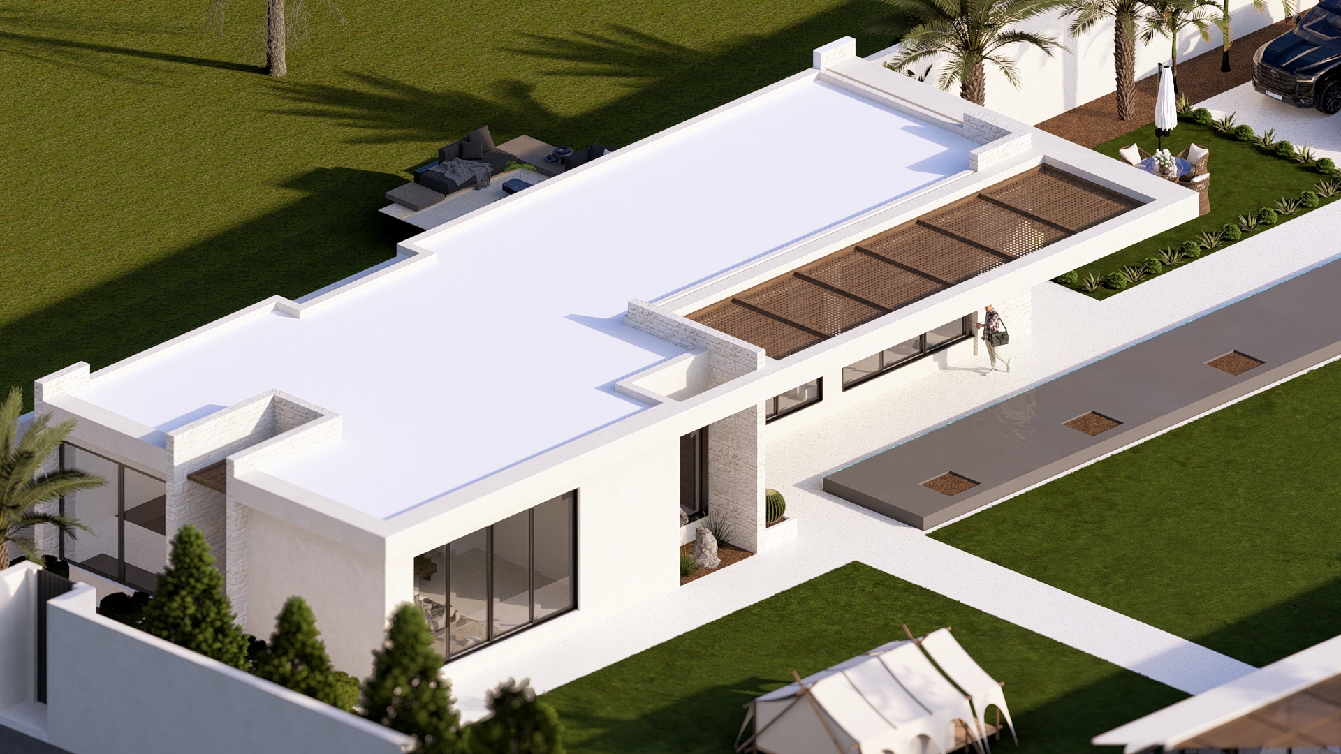 تم تصميم هذه الفيلا وفق رؤية معمارية معاصرة، ترتكز على تقسيم المساحات إلى خمسة فضاءات رئيسية ، ينسجم كل منها مع نمط الحياة الحديثة، ويوفّر تجربة سكنية متكاملة تجمع بين الراحة، الخصوصية، والرفاهية. كل فضاء صُمّم بعناية ليلبّي احتياجات محددة، ويعزز التوازن بين الجمال العملي والانفتاح على الطبيعة