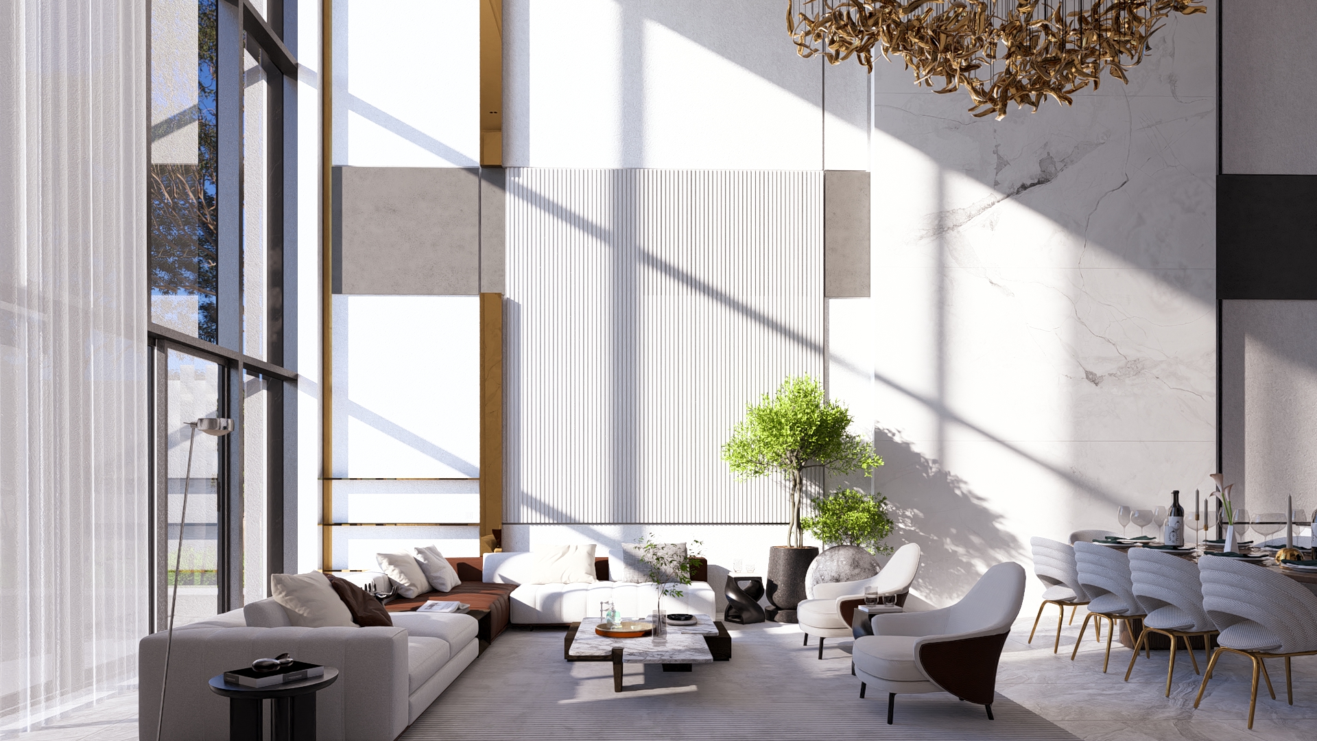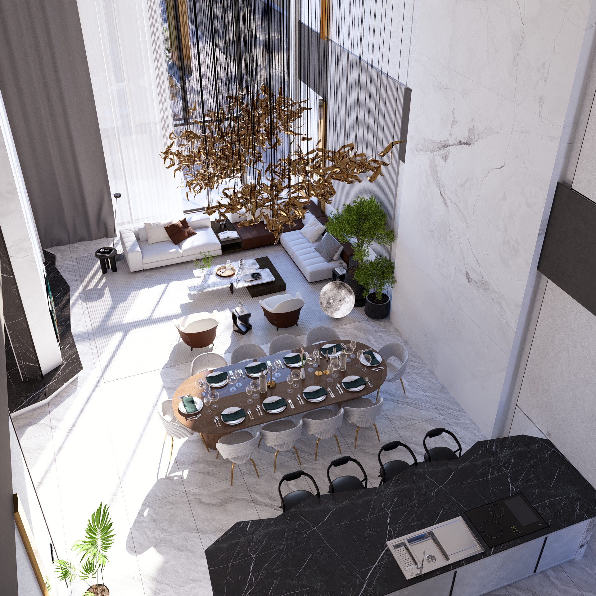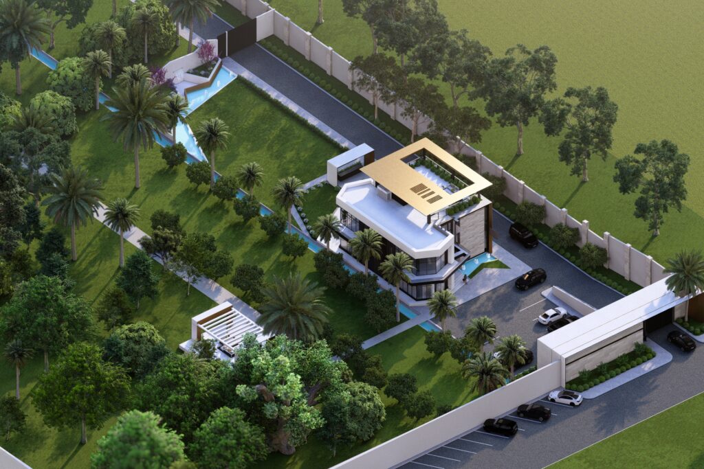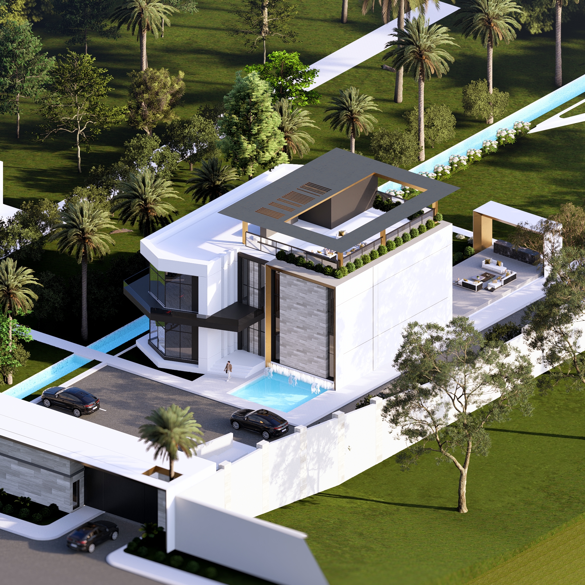 الفيلا تحقق دمجًا متقنًا بين الطراز العصري والطبيعة الهادئة، مع نوافذ بانورامية تعزز الإنارة والتهوية. تصميم معماري يربط بين الداخل والخارج بسلاسة، ليمنح تجربة معيشية متوازنة تجمع بين الراحة والفخامة