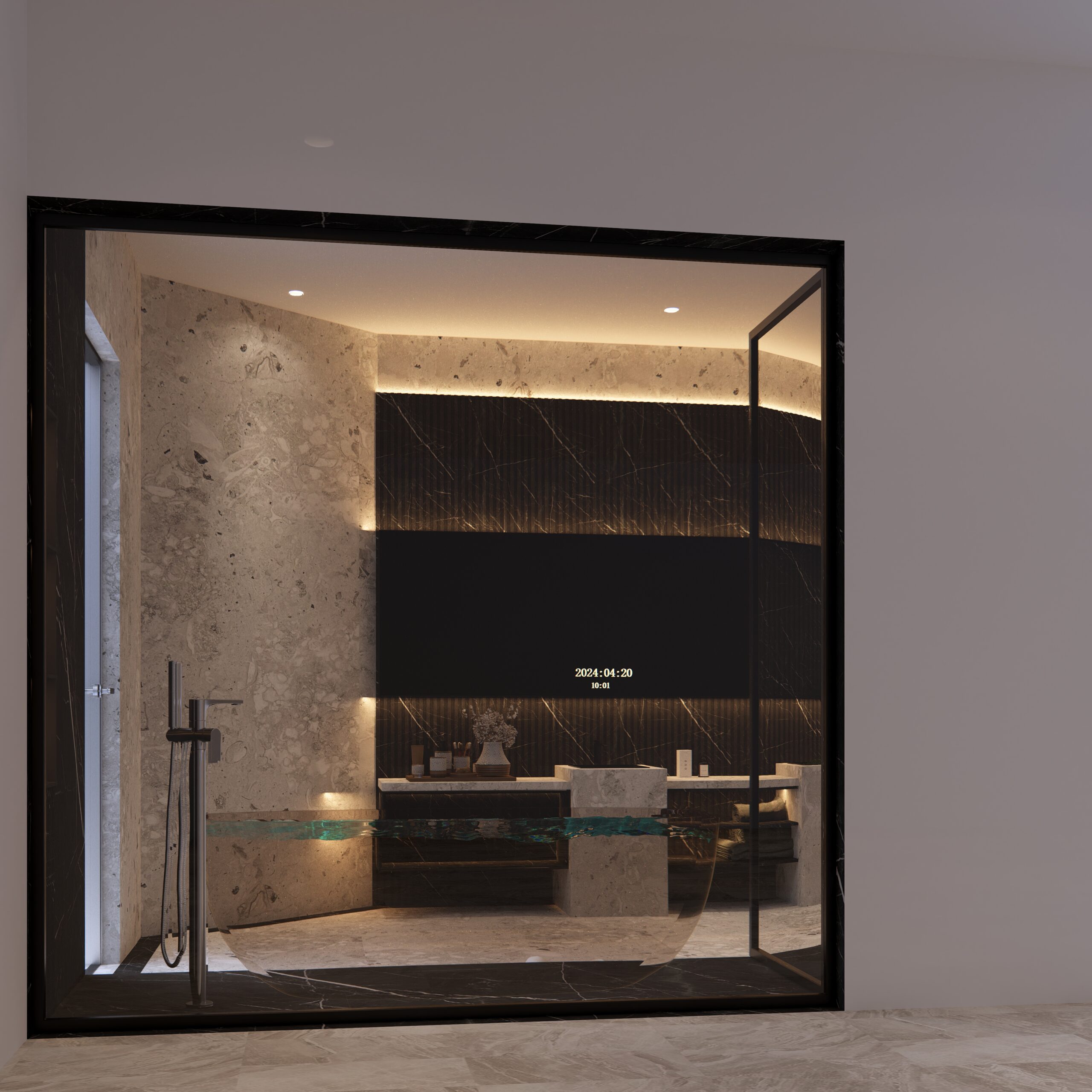 يتوسط المنزل “كورت” داخلي واسع يحتوي على مسبح بأبعاد 12×6.8 متر مع جلسة أنيقة تطل عليه، ليكون القلب النابض للمسكن ومصدرًا للضوء الطبيعي والراحة البصرية