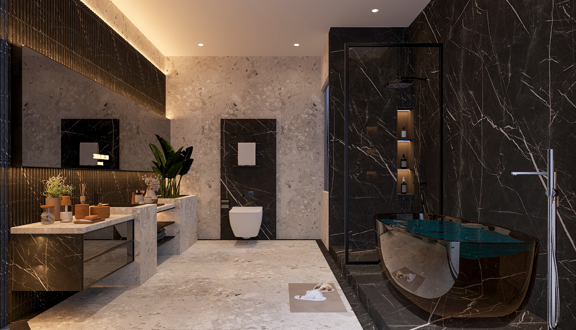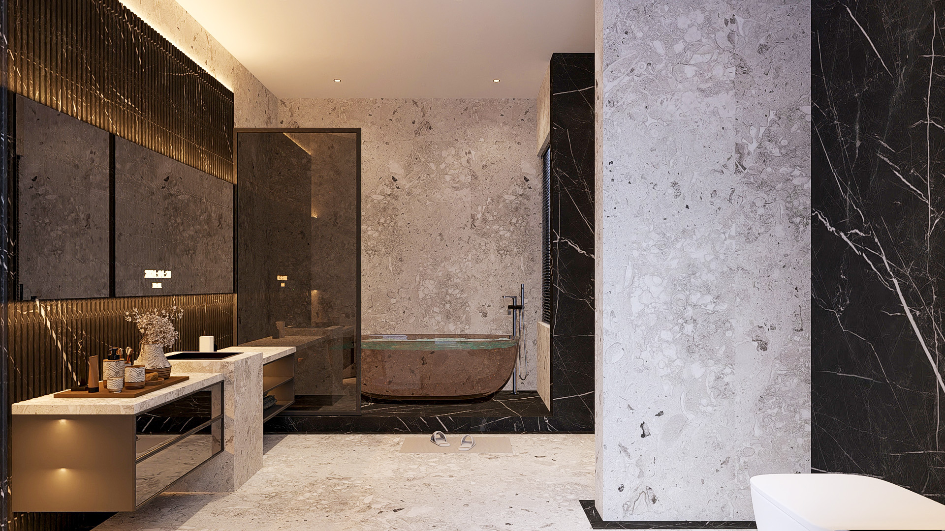 One of the villa’s standout features is a separate building facing the pool, which includes a gym and a private guest area, adding a practical and contemporary element to the overall design, aligned with modern lifestyle needs.
