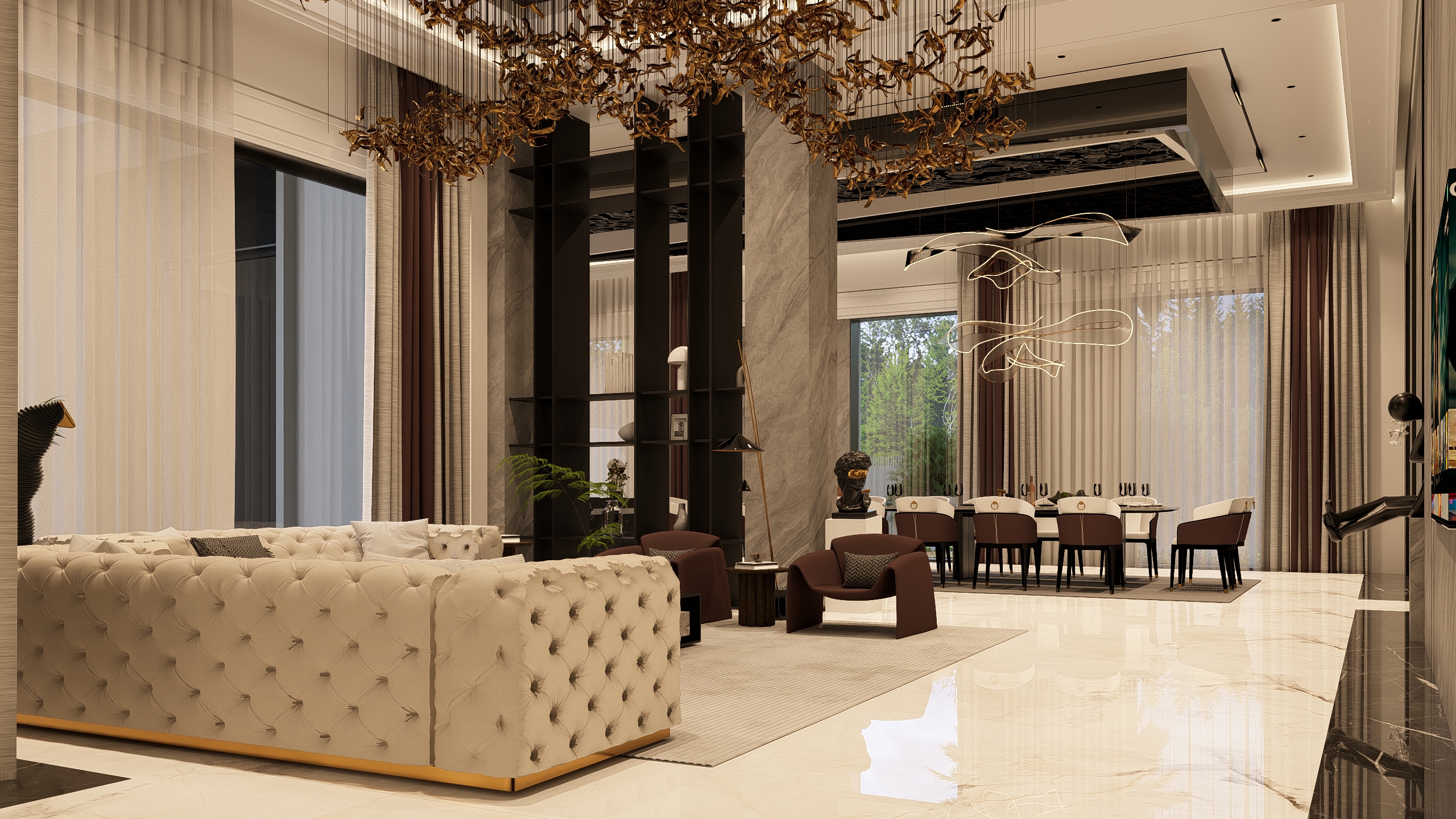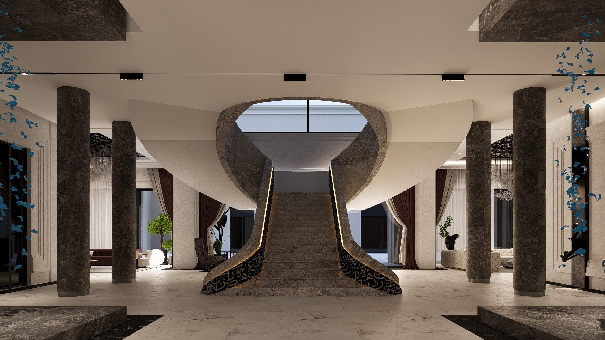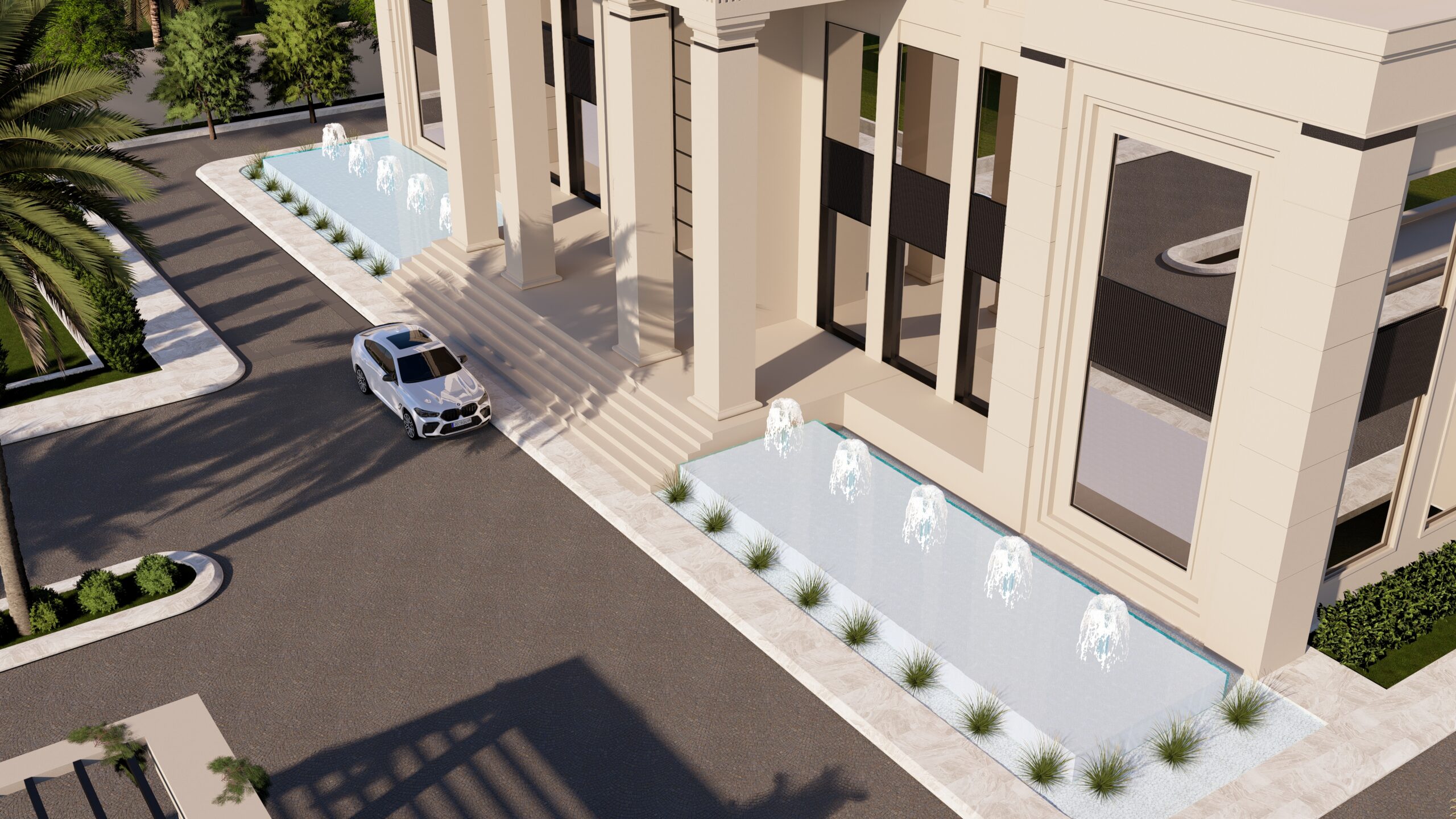 تقع هذه الفيلا الراقية في مدينة البصرة على أرض تبلغ مساحتها 15,000 متر مربع، وتضم مبنى سكنيًا من طابقين مصمم بعناية ليتماشى مع طبيعة الحياة العصرية والفاخرة, المشروع تم العمل عليه بتعاون تكاملي، حيث كان المخطط المعماري والواجهة والهيكل الخرساني من تنفيذ مكتب سابق، فيما تولّى مكتبنا تطوير التصميم الداخلي وإعادة تصميم اللاندسكيب بشكل شامل، بالإضافة إلى تصميم البوابة وتوزيع العناصر الخارجية كاسطبل الخيول والجلسات ومكان الطيور اضافة الى التعديل على المخططات و المسبح
