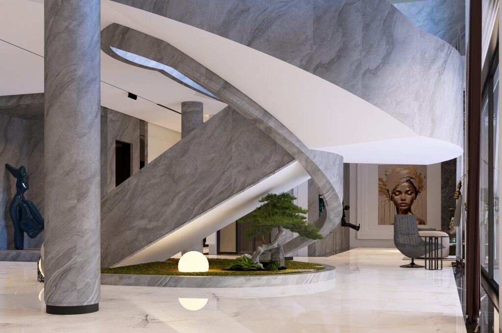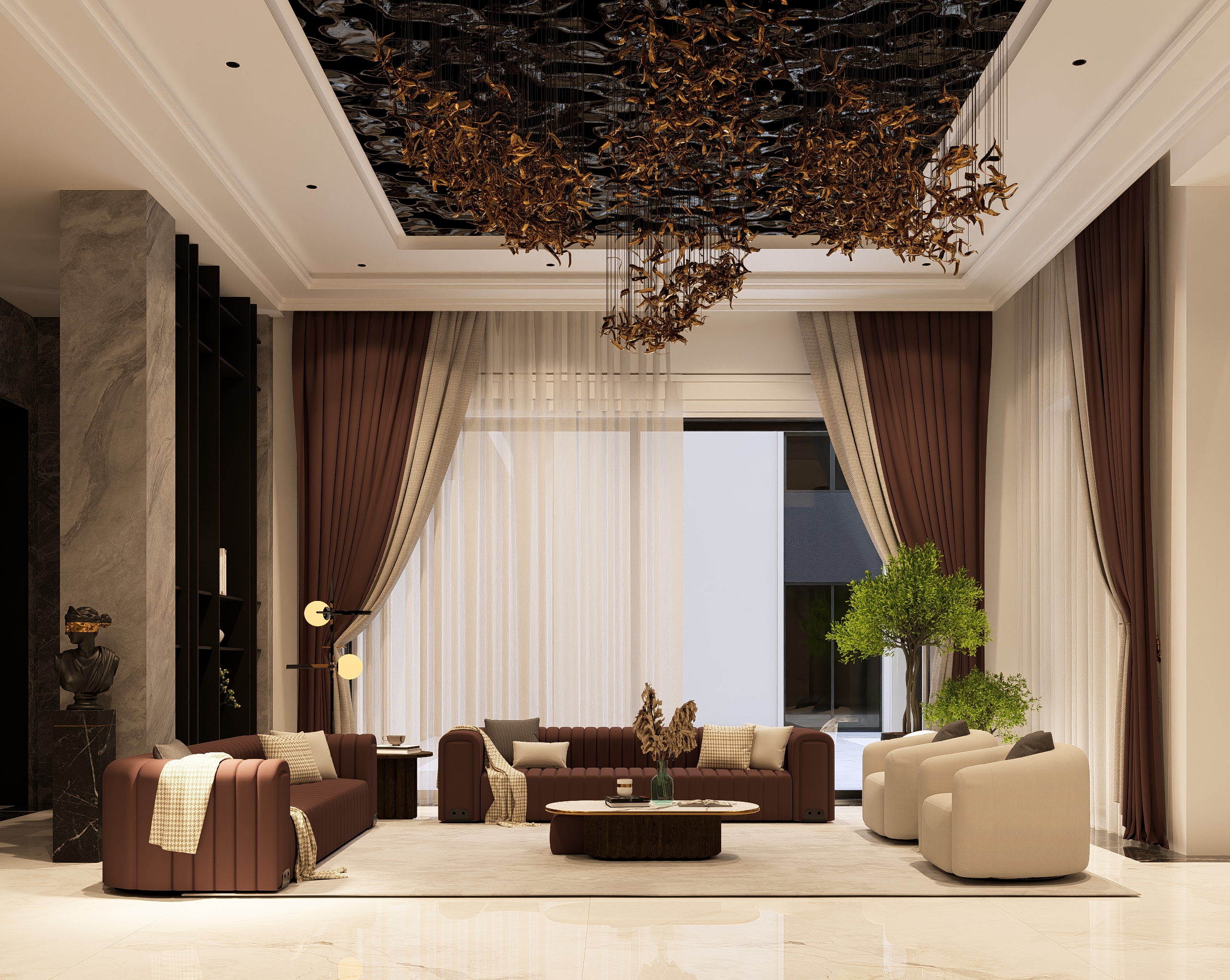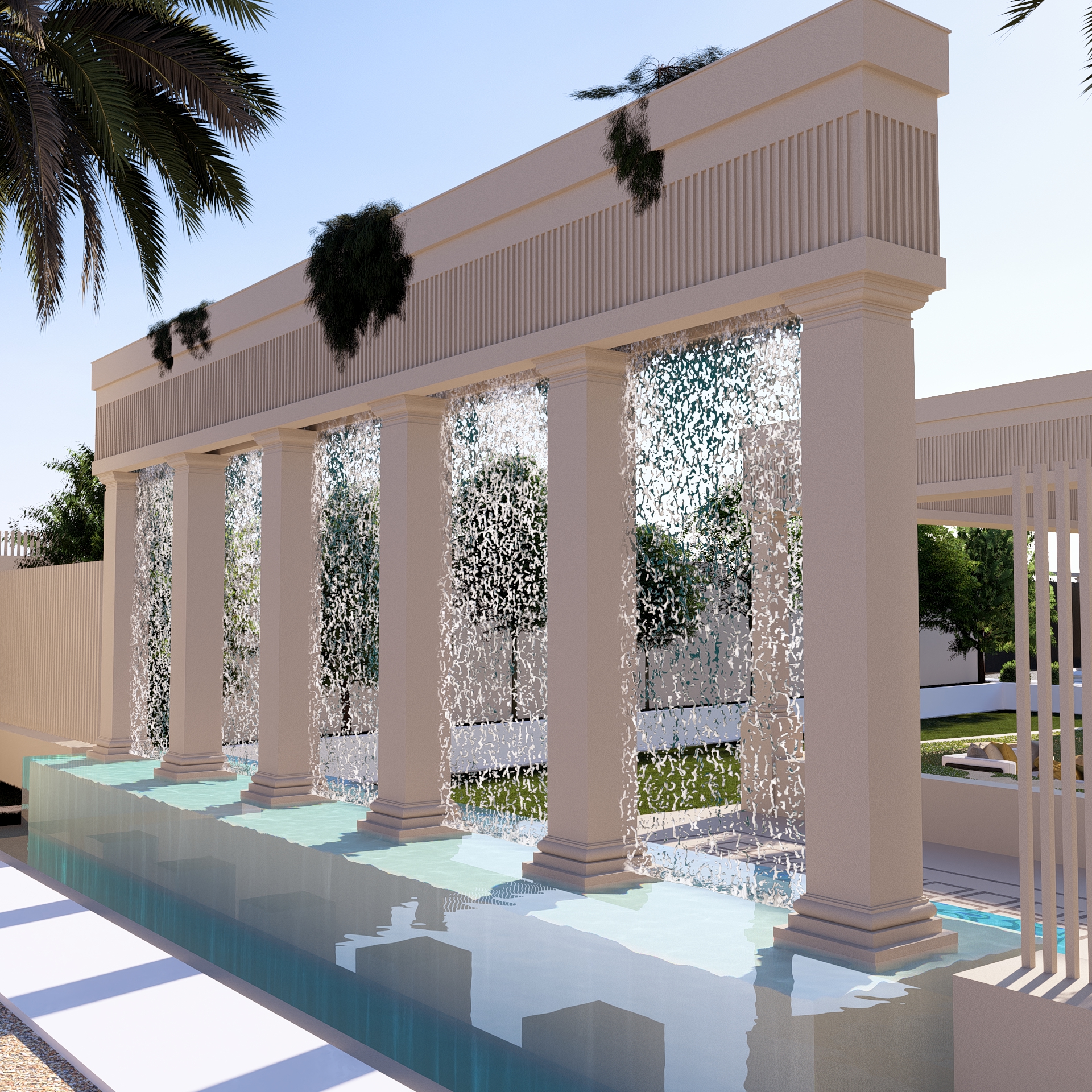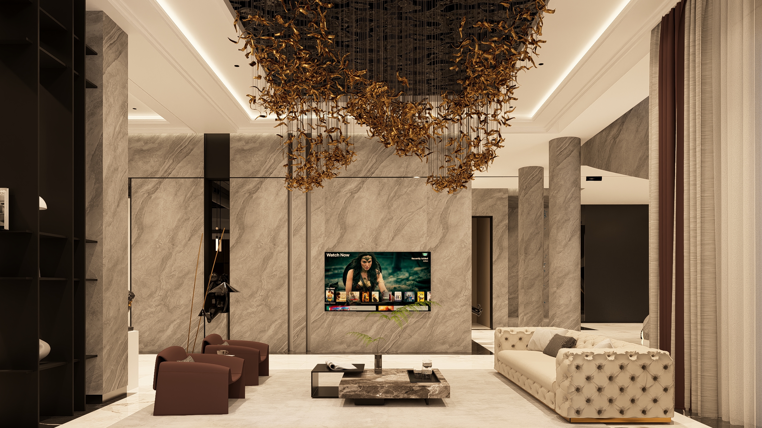 تقع هذه الفيلا الراقية في مدينة البصرة على أرض تبلغ مساحتها 15,000 متر مربع، وتضم مبنى سكنيًا من طابقين مصمم بعناية ليتماشى مع طبيعة الحياة العصرية والفاخرة, المشروع تم العمل عليه بتعاون تكاملي، حيث كان المخطط المعماري والواجهة والهيكل الخرساني من تنفيذ مكتب سابق، فيما تولّى مكتبنا تطوير التصميم الداخلي وإعادة تصميم اللاندسكيب بشكل شامل، بالإضافة إلى تصميم البوابة وتوزيع العناصر الخارجية كاسطبل الخيول والجلسات ومكان الطيور اضافة الى التعديل على المخططات و المسبح