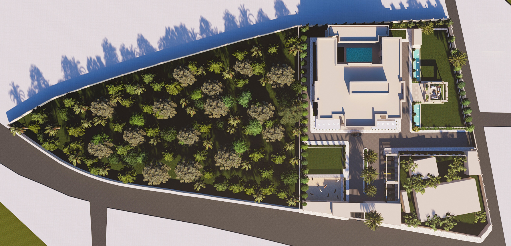 The site also includes an independent mosque that is not accessible from within the villa, maintaining the residents’ privacy while providing a nearby place of worship