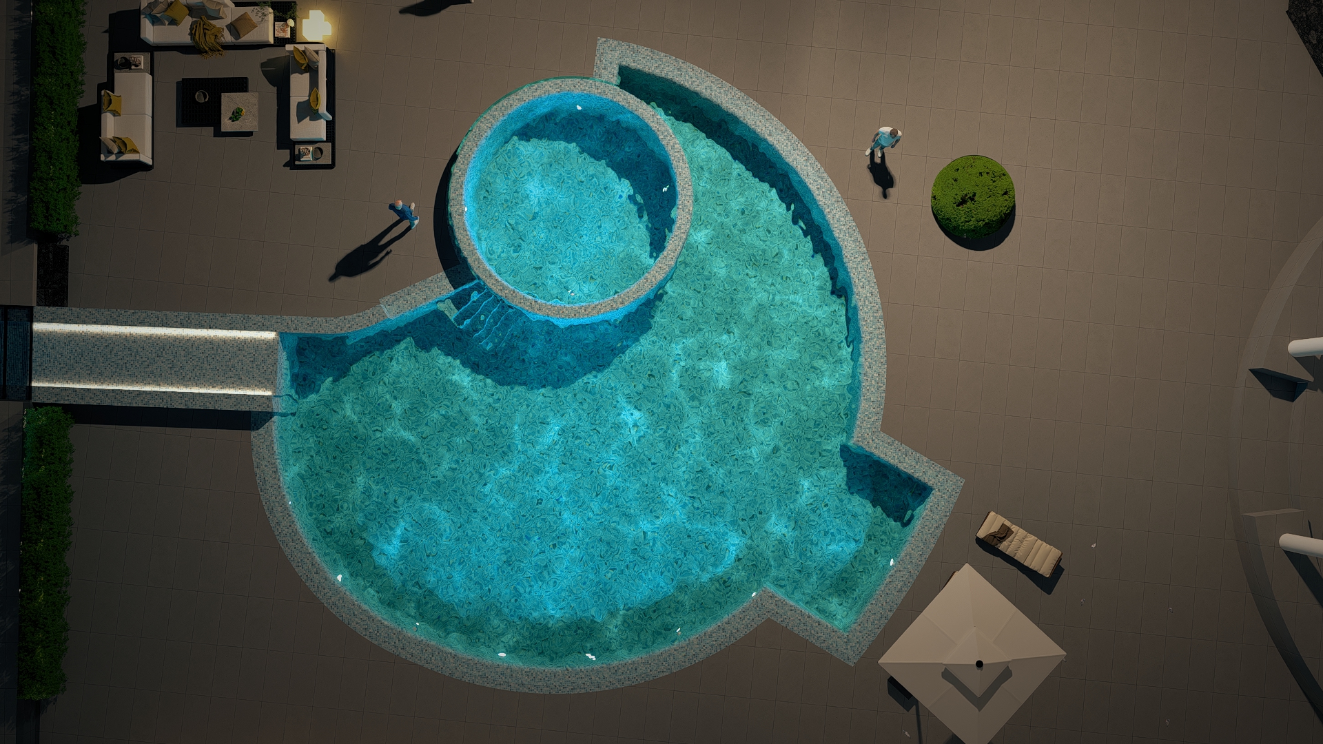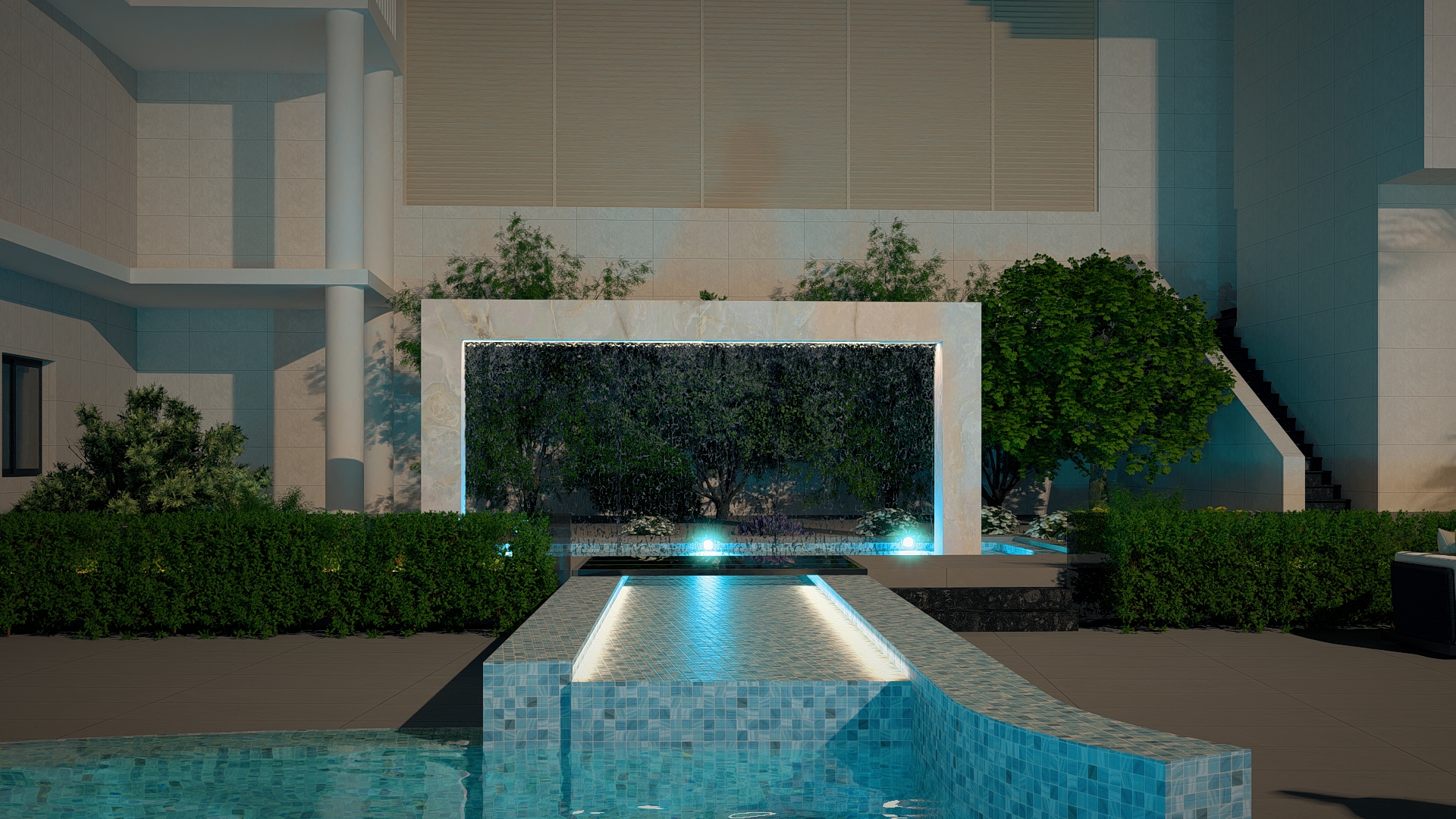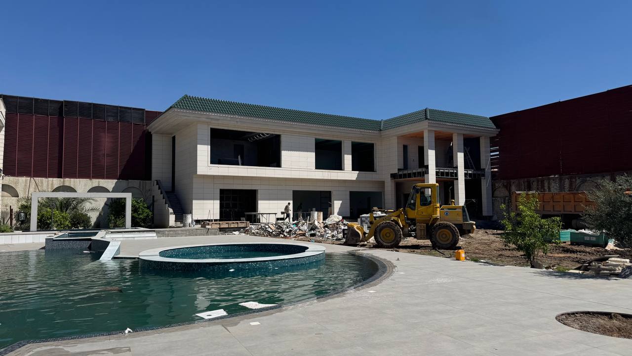 ويكمل المشهد مسبح خارجي واسع يشكل نقطة محورية بين الطبيعة والعمارة
